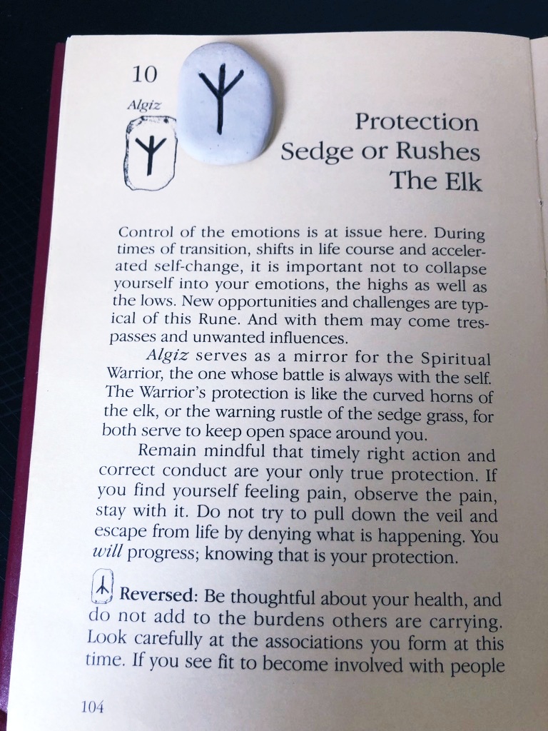 GUARDIAN ANGEL All Hail The Rune ‘Algiz’ magical name; an insignia of Protection, is His fame. In His safekeeping, we are honoured, in our awakening, we will prosper. Boundaries, limits and self care, are tested and strengthened there. Will you need a mirror of reflection? or perhaps, a reversal for protection? We might not reap all that we sow, but from awareness, we will grow. Algiz raises upwards his guiding hand, asking: ’This, do You understand? This sign is used on armour and shields, as ‘symbolic’ of defence on battlefields. Algiz will be your strength of mind, when struggling in emotional times. A magnetic force, a field of energy, if you have any problems, call *Hamingia* Victoria Healing ~ 10.10.2021 Protect Your Peace.