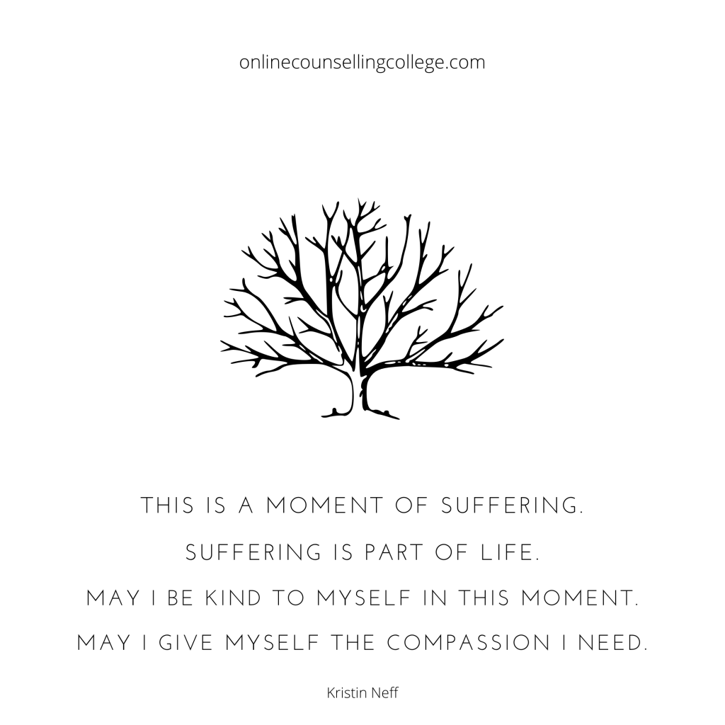 “This is a moment of suffering. Suffering is part of life. May I be kind to myself in this moment. May I give myself the compassion I need.” – Kristin Neff