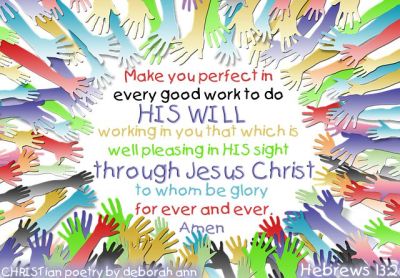 Make you perfect in every good work to do his will, working in you that which is well pleasing in his sight, through Jesus Christ; to whom be glory for ever and ever. Amen.